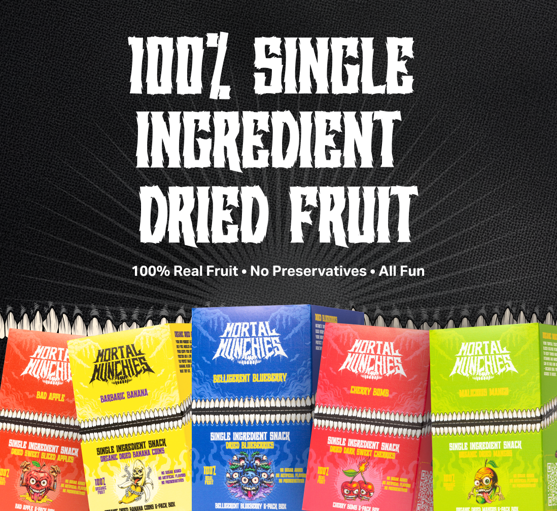 Our dried fruit snacks are made solely from 100% natural, whole fruit - nothing else! Each variety contains only one ingredient: organic bananas, apples, blueberries, cherries, or mangoes that have been sliced and dried. No added sugar, no preservatives, no seed oils, no dyes, and no artificial ingredients. Just 100% natural fruit.