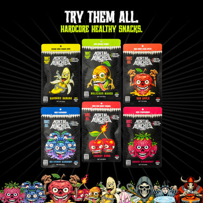 Forget labs and factories. Mortal Munchies is just nature, stripped down, and bagged for the journey. Our dried fruit—Bad Apples, Malicious Mangoes, Savage Strawberries—grows on trees, not in test tubes. We pluck it, dry it, and deliver it. No seed oils. No preservatives. No added sugar. Just pure, potent fuel that tastes as great as nature intended.Â