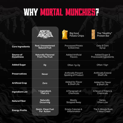 Mortal Munchies isn't just about snacks; it's a middle finger to the processed food industry pumping poison for profit. We're ingredient purists and B.S. detectors, hellbent on making healthy eating cool again. This is a movement for everyone tired of literally being fed lies. Are you ready to take back control?